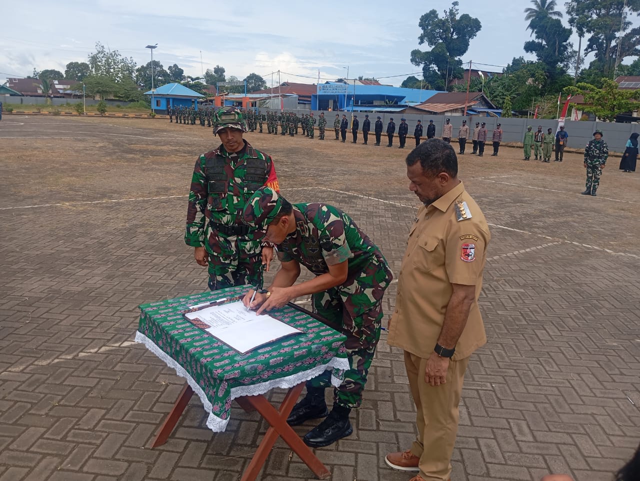 Selain itu, dilakukan penandatanganan naskah berita acara dan penyerahan hasil pekerjaan secara simbolis dari Dandim 1704/Mappi kepada Bupati Kabupaten Mappi sebagai tanda bahwa seluruh kegiatan TMMD TA. 2026 telah resmi ditutup dan seluruh pekerjaan dinyatakan selesai. Penyerahan ini menjadi penegasan bahwa seluruh program pembangunan yang dilaksanakan selama satu bulan penuh telah mencapai target dan memberikan manfaat nyata bagi masyarakat.