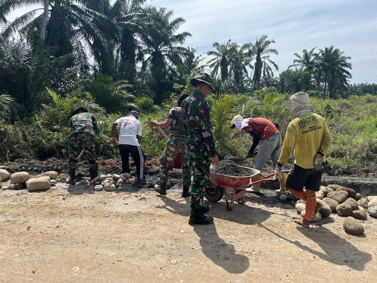 Semangat gotong royong dan kekompakan antara TNI dan warga dalam mengangkut dan menyusun material batu dan semen menunjukkan dedikasi tinggi. Komitmen ini tidak hanya terlihat pada TPT, tetapi juga pada sasaran lain seperti perapian jalan (finishing) dan pembangunan tugu prasasti.