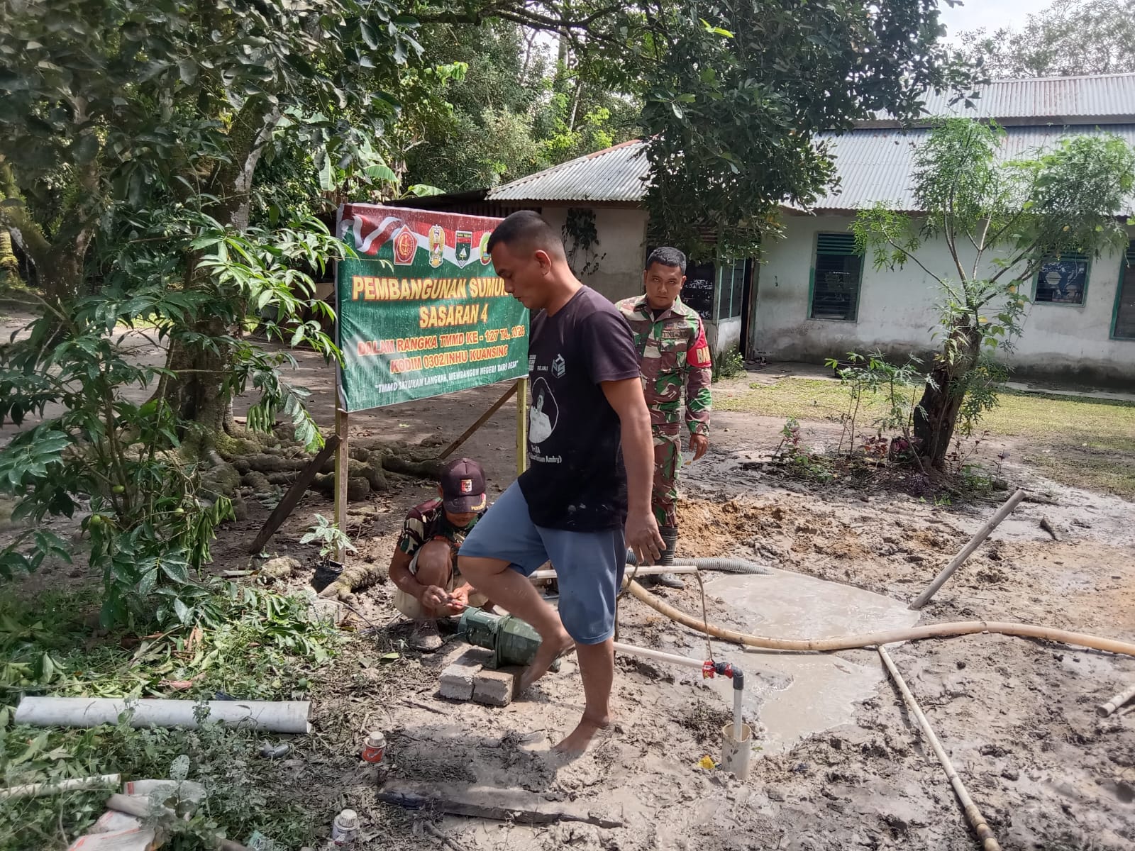 Kuansing – Satgas TMMD (TNI Manunggal Membangun Desa) ke-127 Kodim 0302/INHU memulai pembuatan sumur bor di Dusun 1 Desa Perhentian Luas, Kecamatan Logas Tanah Darat, Kabupaten Kuantan Singingi. Pada hari Selasa, 17 Februari 2026, kegiatan penggalian sumur bor mulai dilaksanakan.