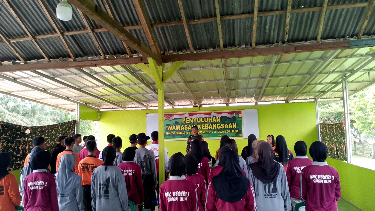 Muba – Di saat pelaksanaan pembangunan infrastruktur desa dalam program TMMD ke-126, Satgas TMMD Kodim 0401/Muba juga melaksanakan kegiatan nonfisik berupa penyuluhan wawasan kebangsaan. Kegiatan ini berlangsung di Makoramil 401-01/Sunghai Lilin, Kecamatan Sungai Lilin, Minggu (19/10/2025), dipimpin oleh Peltu Ujang selaku anggota Satgas TMMD sekligus Batuud KOmramil 401-01/Sungai Lilin.