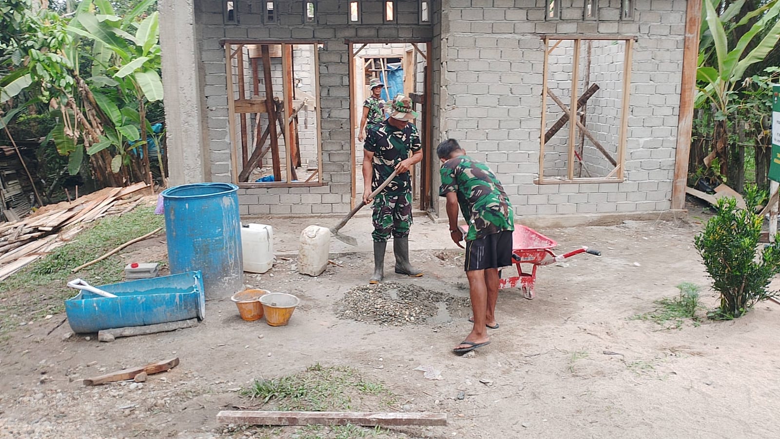TMMD 127 Kodim 0302/Inhu : Progres Pembangunan Rumah Layak Huni Bapak Masrizal Berjalan Lancar, Pemasangan Dinding Batako Dilanjutkan