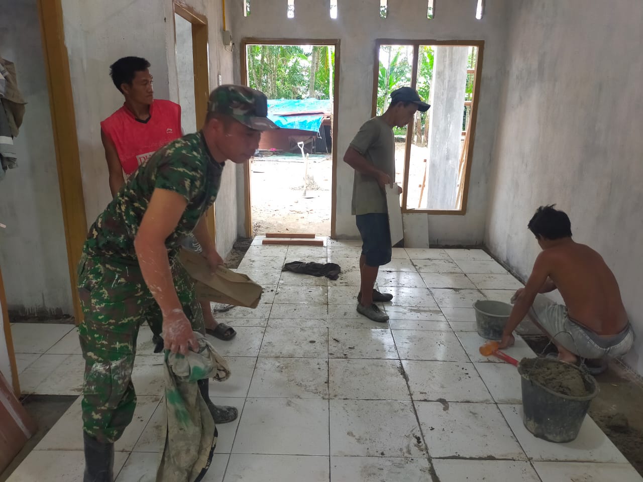 Kuantan Singingi – Pada hari Minggu, 8 Maret 2026, kegiatan pembangunan rumah layak huni milik Bapak Hamidan di Dusun 1, Desa Tanjung, Kecamatan Kuantan Hilir Seberang, Kabupaten Kuantan Singingi, menunjukkan progres yang semakin mendekati penyelesaian. Bertempat di lokasi rumah yang menjadi sasaran program bedah rumah dalam rangka TMMD ke-127 Tahun 2026, anggota Satgas TMMD bersama masyarakat setempat melaksanakan kegiatan pemasangan keramik, pemasangan kloset, serta pengecatan dinding luar rumah.