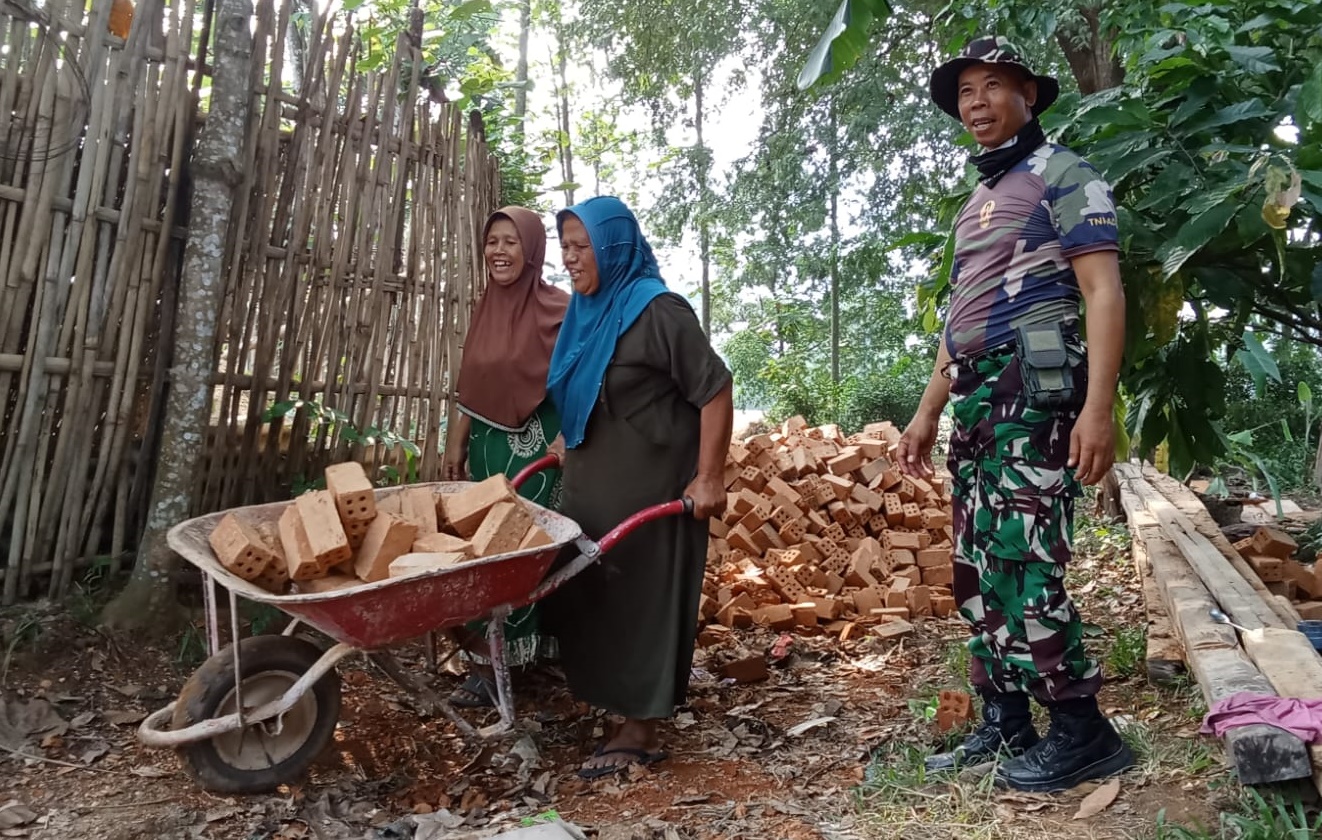 Warga lain pun makin terpacu melihat keberanian dan kegigihan dua emak-emak tersebut. Mereka semakin menjadi motivasi bagi seluruh masyarakat untuk kerja bersama mensukseskan TMMD ke 125 di kampung mereka.