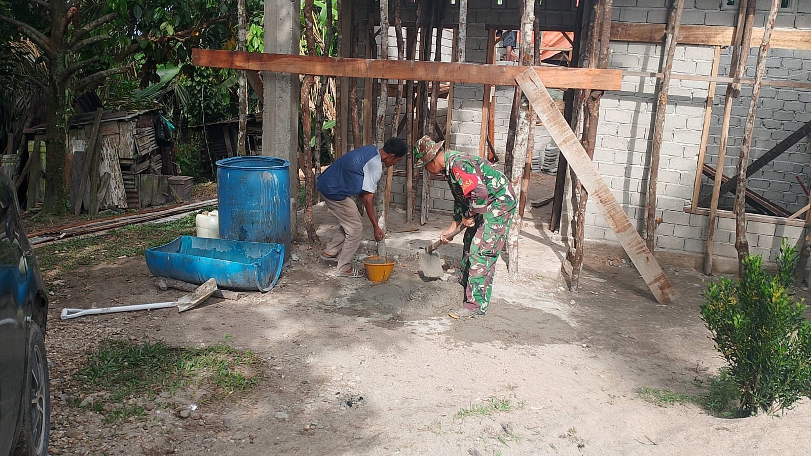 TMMD ke-127 Kodim 0302/Inhu Lanjutkan Pembangunan Rumah Layak Huni Bapak Masrizal: Pemasangan Batu Batako Terus Dikebut