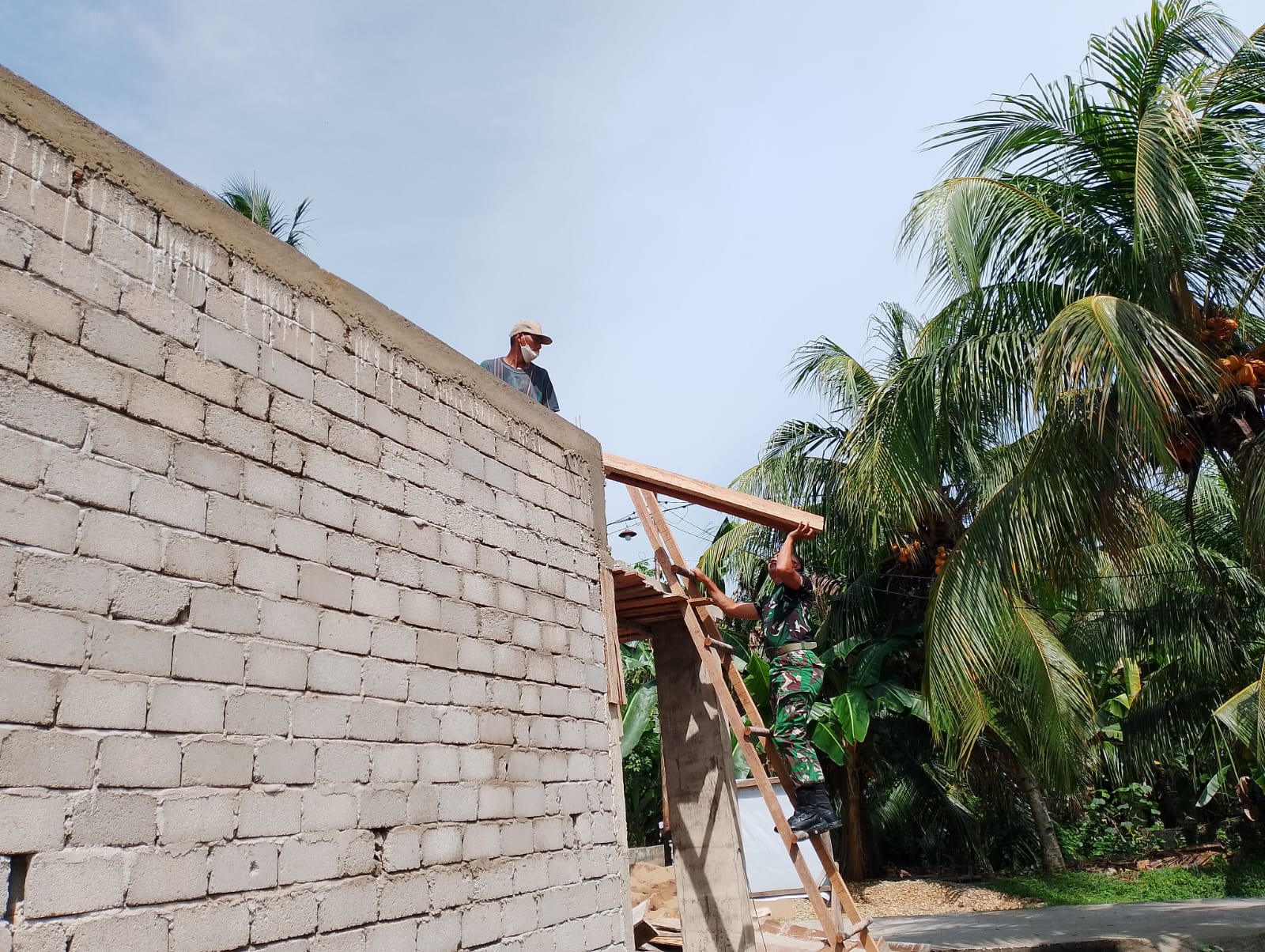 Pemasangan kuda-kuda atap ini merupakan tahapan penting dalam pembangunan rumah, karena akan menjadi penopang utama atap rumah. Satgas TMMD bersama masyarakat setempat bekerja sama melaksanakan kegiatan ini dengan cermat dan teliti, memastikan agar kuda-kuda atap terpasang dengan kuat dan kokoh.