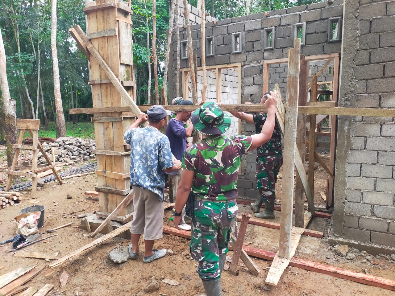 Tanjung, Kuansing – Satgas TMMD (TNI Manunggal Membangun Desa) ke-127 Kodim 0302/INHU terus melanjutkan pembangunan rumah layak huni milik Bapak Hamidan di Dusun 1 Desa Tanjung, Kecamatan Kuantan Hilir Seberang, Kabupaten Kuantan Singingi. Pada hari Selasa, 17 Februari 2026, kegiatan difokuskan pada pemasangan cerocok untuk persiapan pengecoran dak rumah.
