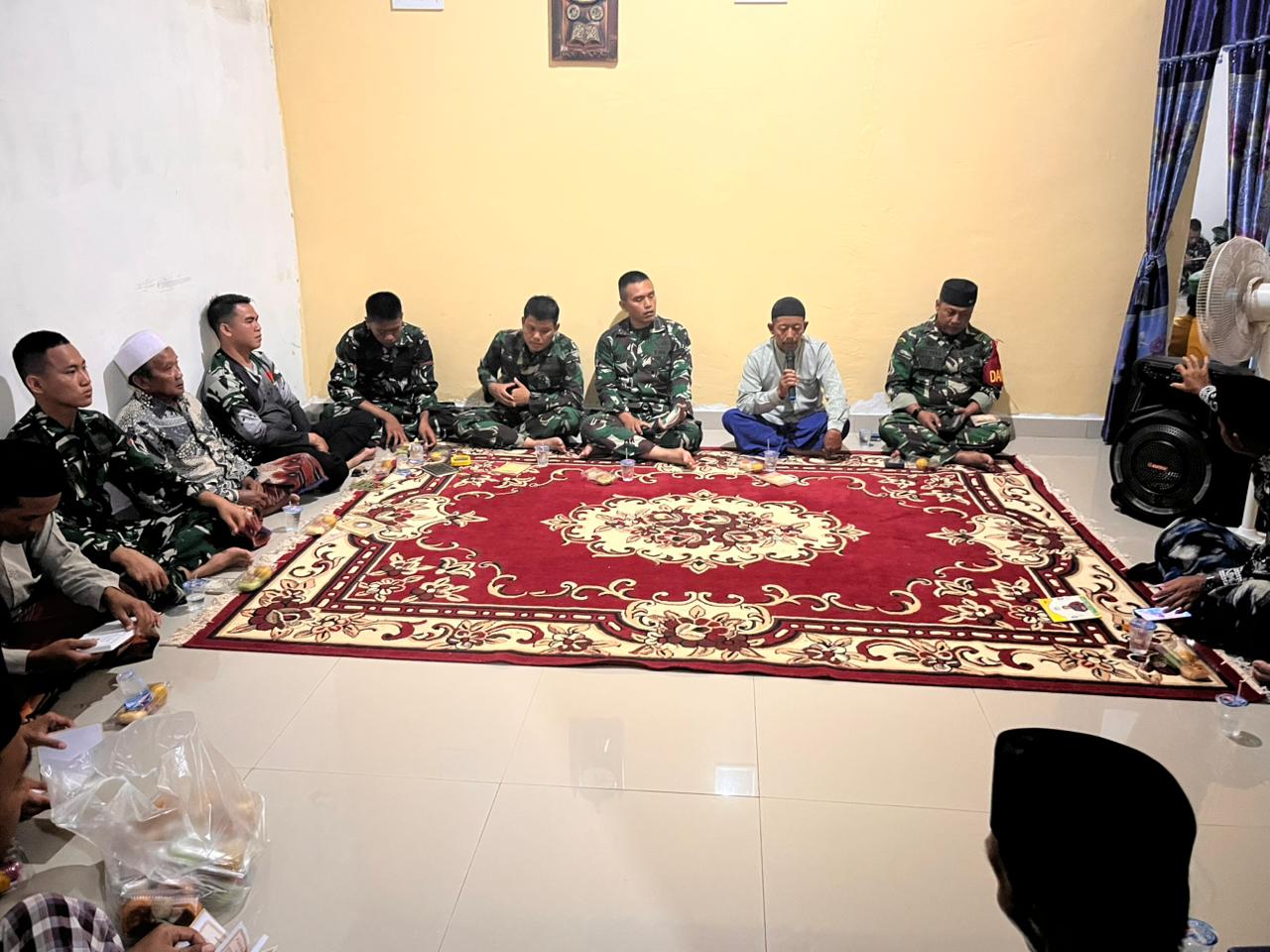 Pulau Rimau – Anggota Satgas TMMD ke-127 Kodim 0430/Banyuasin menghadiri undangan kegiatan Ruwahan dan Doa bersama di kediaman Bapak Purwanto, yang berlokasi di Jalur 10, Desa Wonosari, Kecamatan Pulau Rimau. Kehadiran Satgas TMMD ini merupakan wujud silaturahmi dan kedekatan TNI dengan masyarakat setempat.