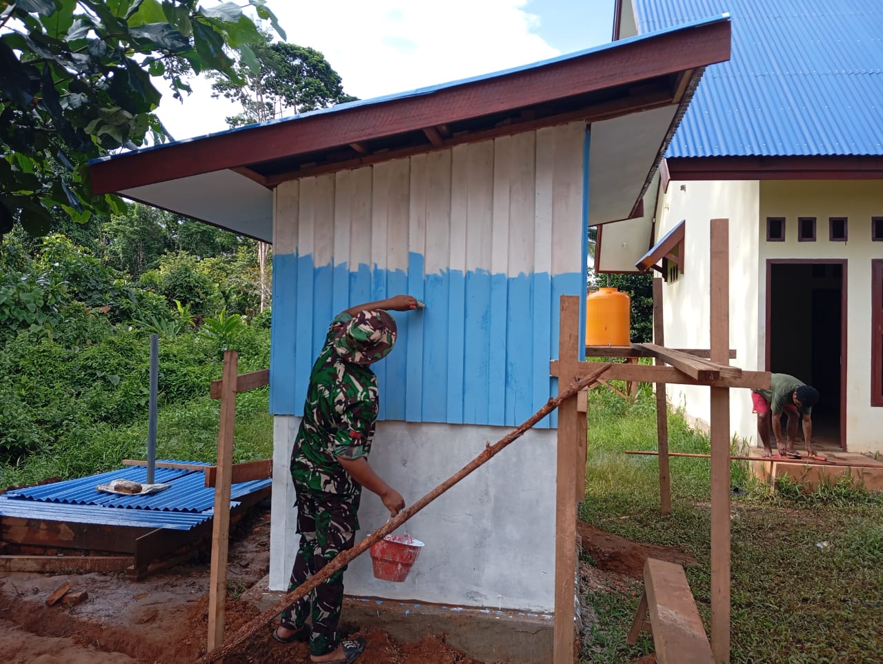 Mappi – Satgas TMMD (TNI Manunggal Membangun Desa) ke-127 Kodim 1704/Mappi terus memacu pembangunan Mandi Cuci Kakus (MCK) yang berlokasi di belakang Gereja Kp. Yibin, Distrik Venaha, Kabupaten Mappi. Pada hari ke-16 pelaksanaan TMMD, Rabu (25/2/2026), Satgas memberikan sentuhan akhir dengan melakukan pengecatan dinding MCK, menjadikan fasilitas sanitasi ini tidak hanya fungsional, tetapi juga lebih indah dan menarik.