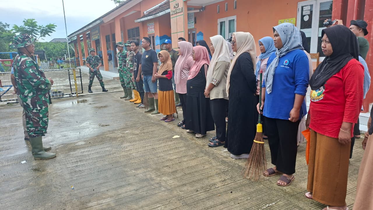 BREBES – Semangat gotong royong mewarnai pelaksanaan TNI Manunggal Membangun Desa (TMMD) Reguler ke-127 Kodim 0713/Brebes. Pada Senin (16/02/2026), anggota Koramil 14/Banjarharjo bersama Ibu-ibu Kader PKK Desa Cikuya melaksanakan aksi bersih-bersih lingkungan di seputaran Kantor Desa Cikuya, Kecamatan Banjarharjo.