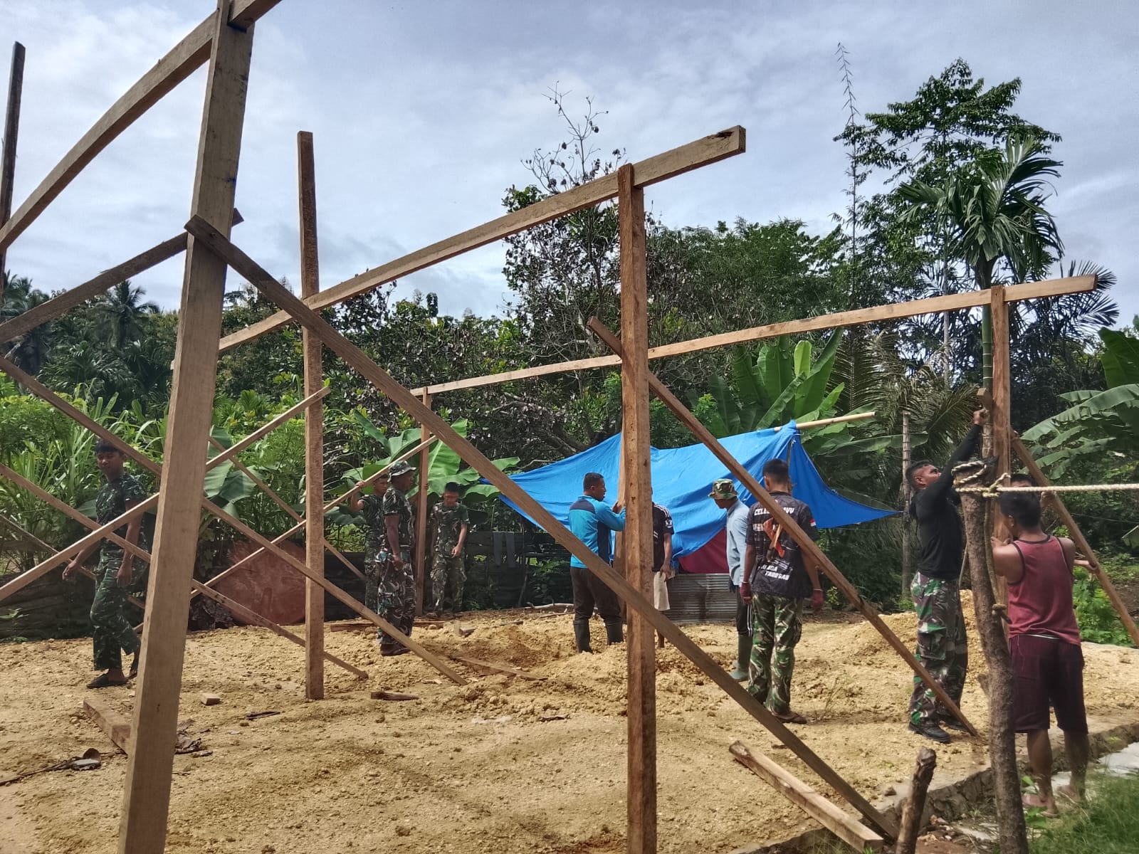 Pada Selasa (3/3), sejumlah personel Satgas TMMD bersama warga bahu-membahu melaksanakan pembangunan rangka rumah untuk program Rumah Layak Huni (RLTH) di Kelurahan Sambuli.