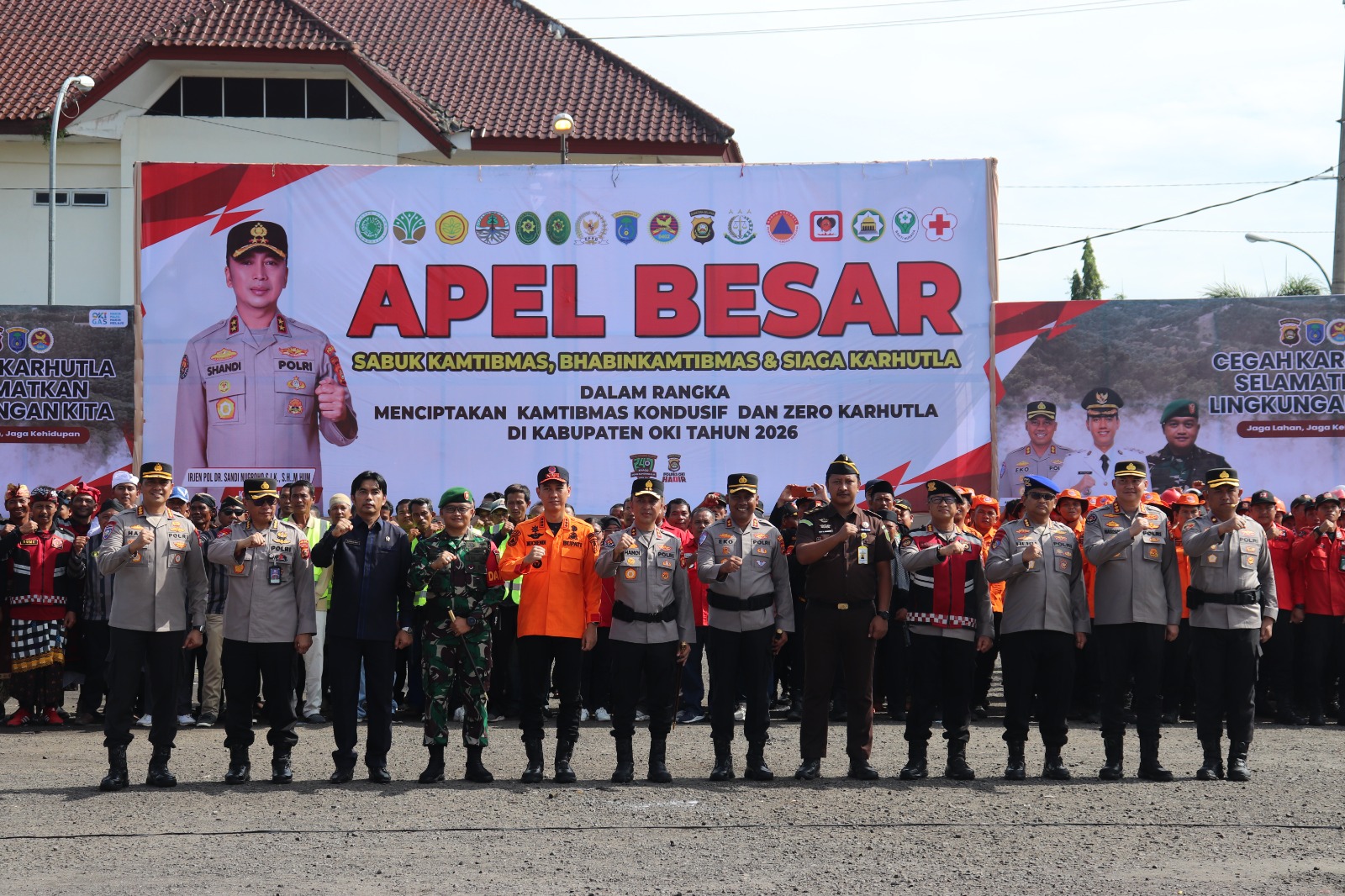 OKI – Komandan Kodim 0402/OKI-OI Letkol Inf Gunawan Wibisono, S.H., menghadiri kegiatan Apel Besar Sabuk Kamtibmas, Bhabinkamtibmas dan Siaga Karhutla dalam rangka menciptakan situasi kamtibmas yang kondusif serta mewujudkan zero kebakaran hutan dan lahan (karhutla) di wilayah Kabupaten Ogan Komering Ilir (OKI) Tahun 2026.